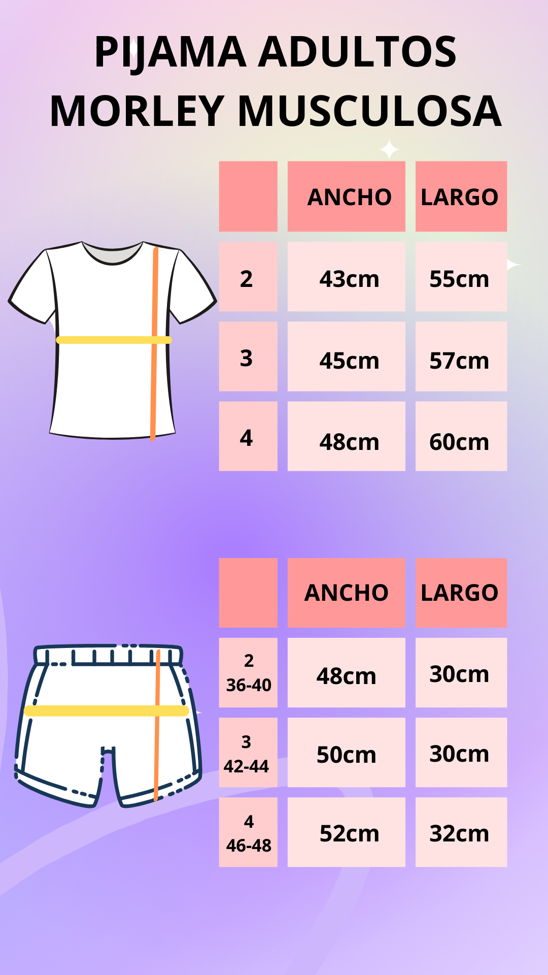 TABLA DE MEDIDAS con equivalencias y medidas para que revises ANTES DE HACER TU COMPRA.
