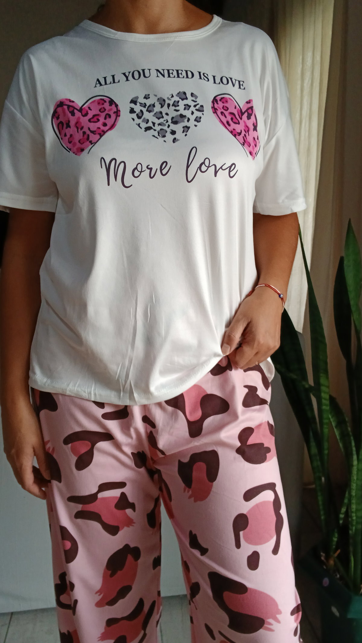 PIJAMA COMPUESTO POR REMERA MANGA CORTA Y PANTALÓN LARGO.