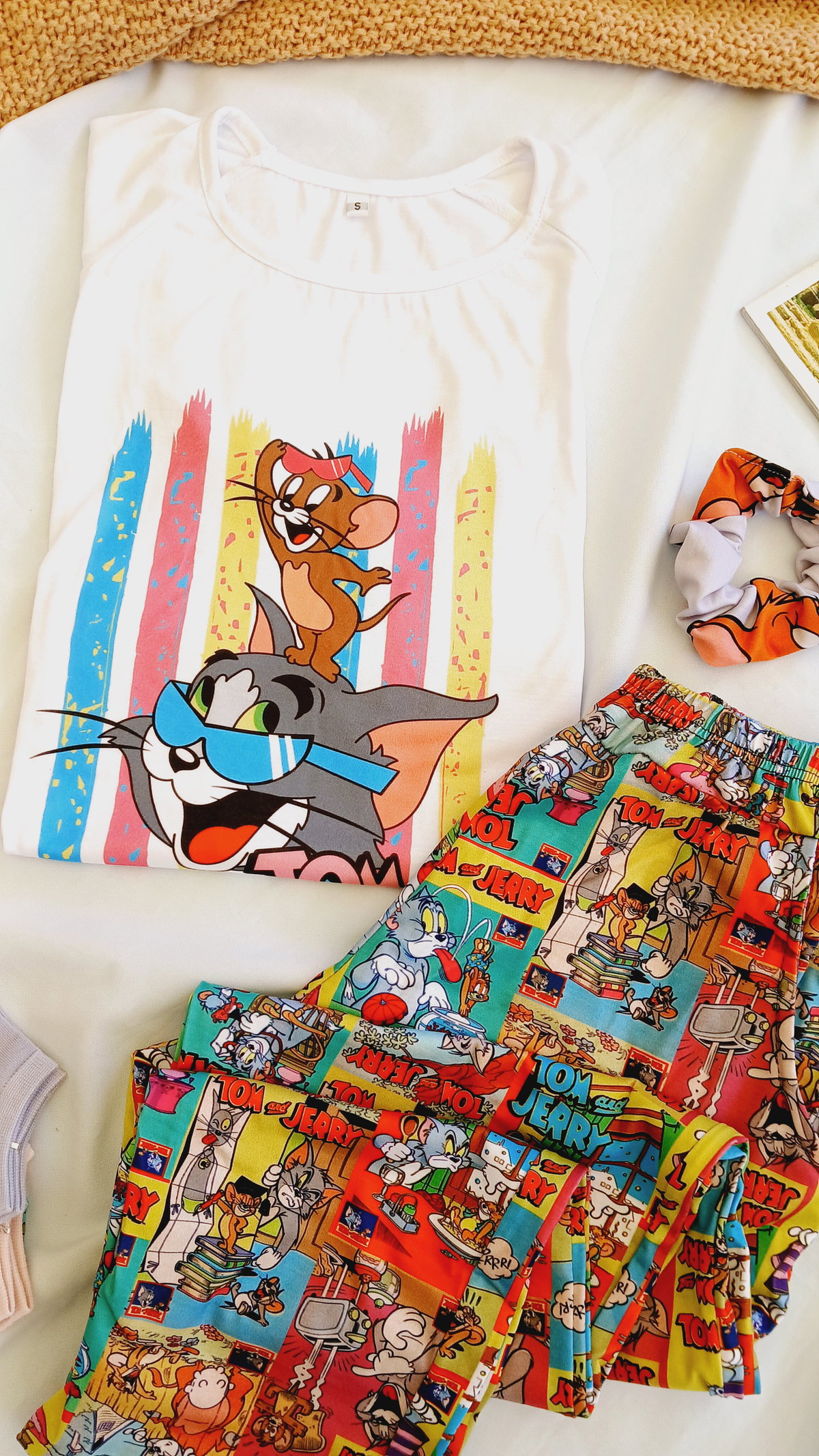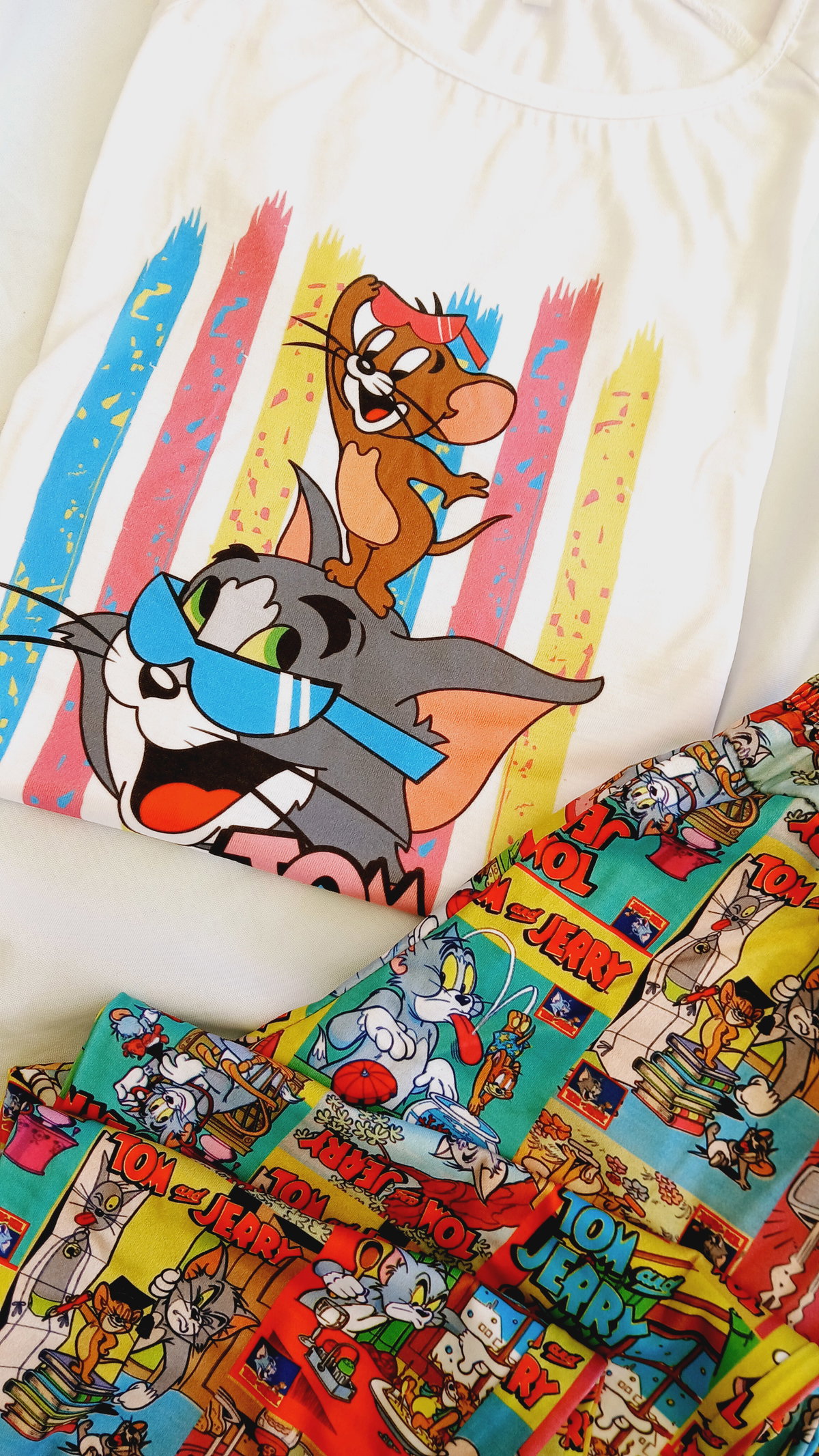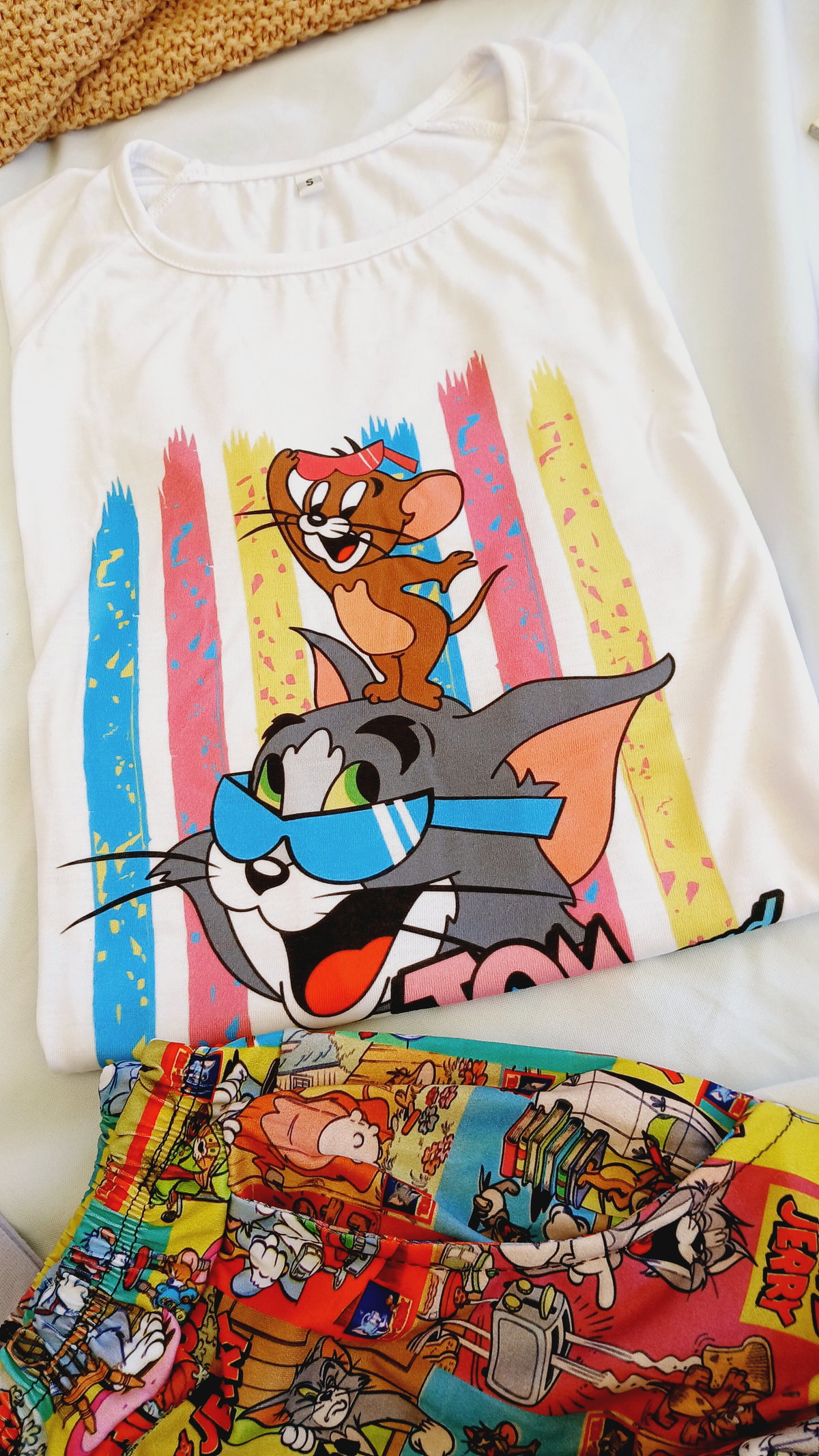 Conjunto de remera mangas cortas y pantalón largo con bolsillos.