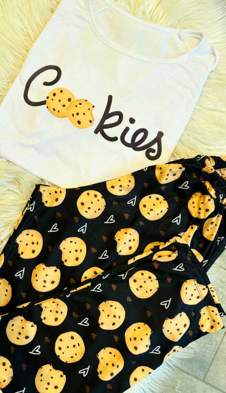 Conjunto de remera mangas cortas y pantalón largo con bolsillos.