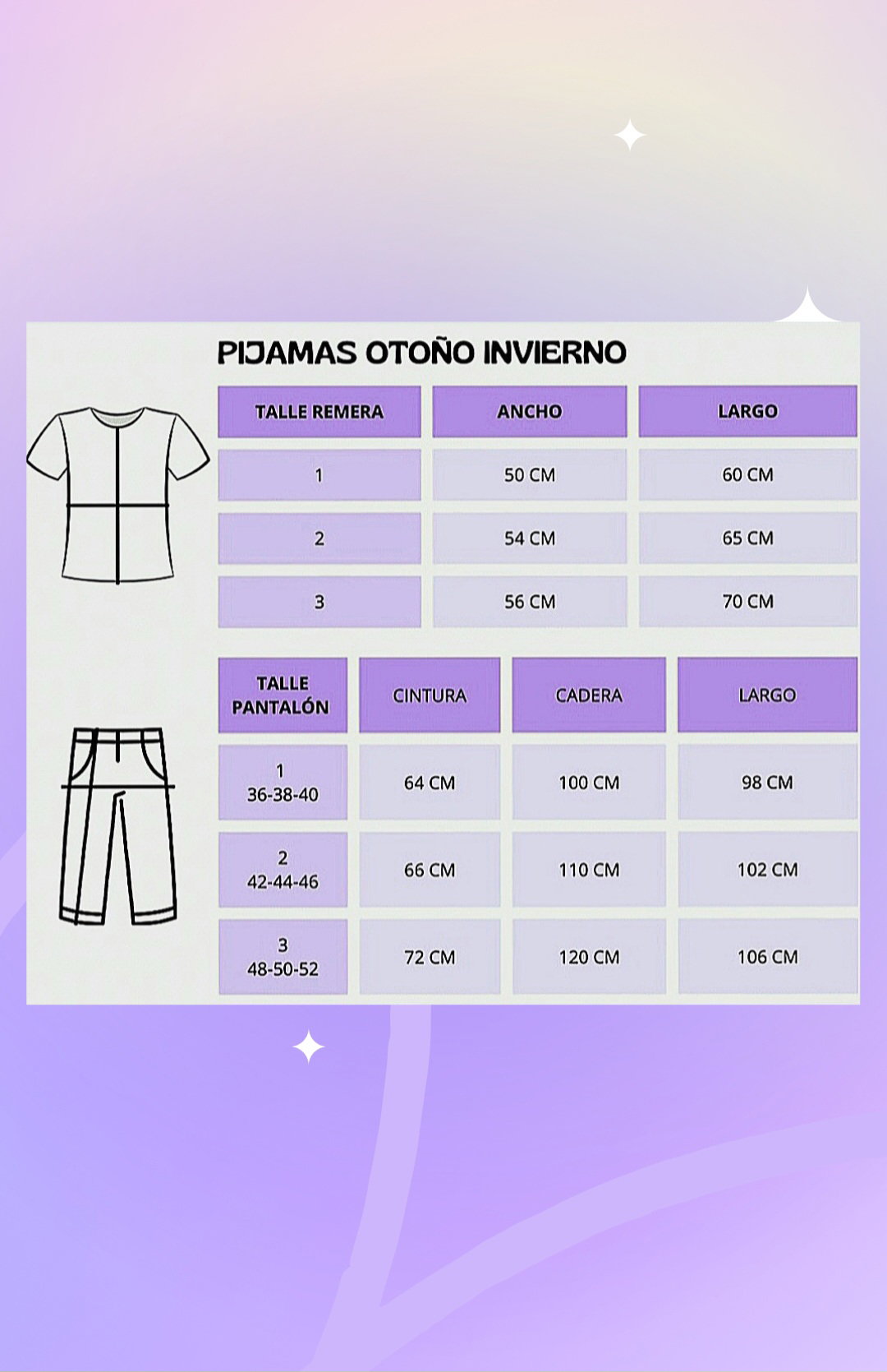 TABLA DE MEDIDAS con equivalencias y medidas para que revises ANTES DE HACER TU COMPRA.