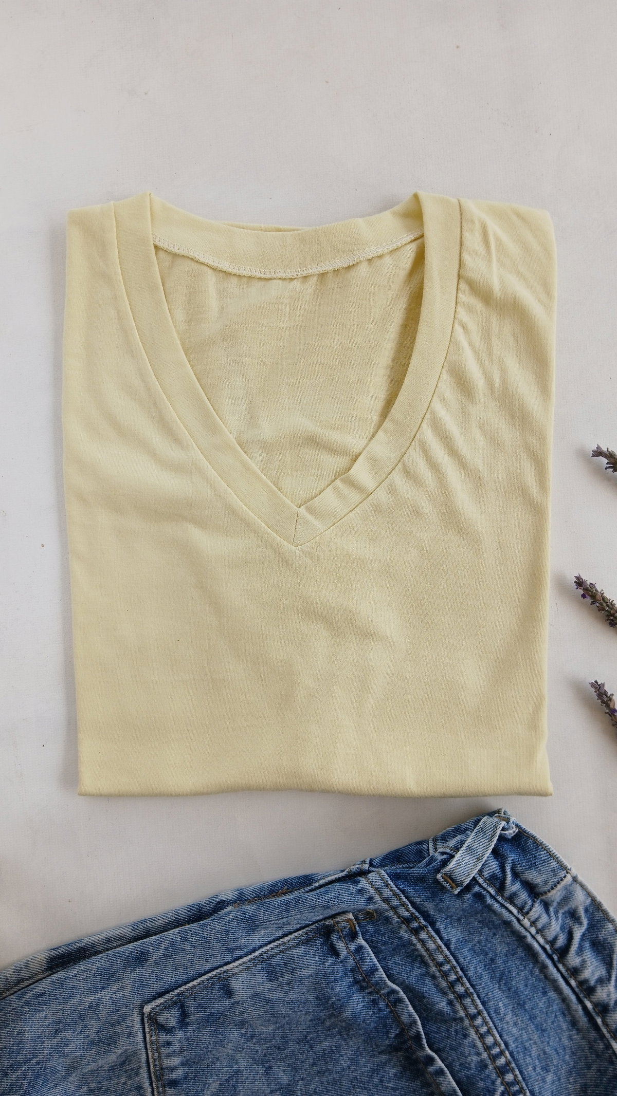 REMERA AMARILLO PASTEL 100% ALGODÓN CUELLO V